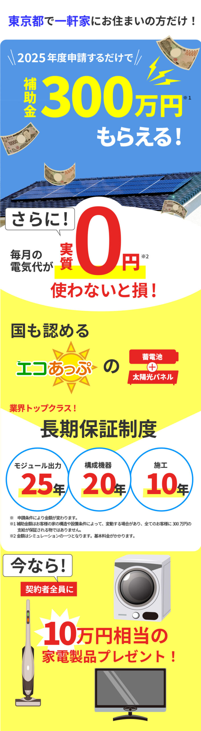 翌月の電気代からすぐに0円!